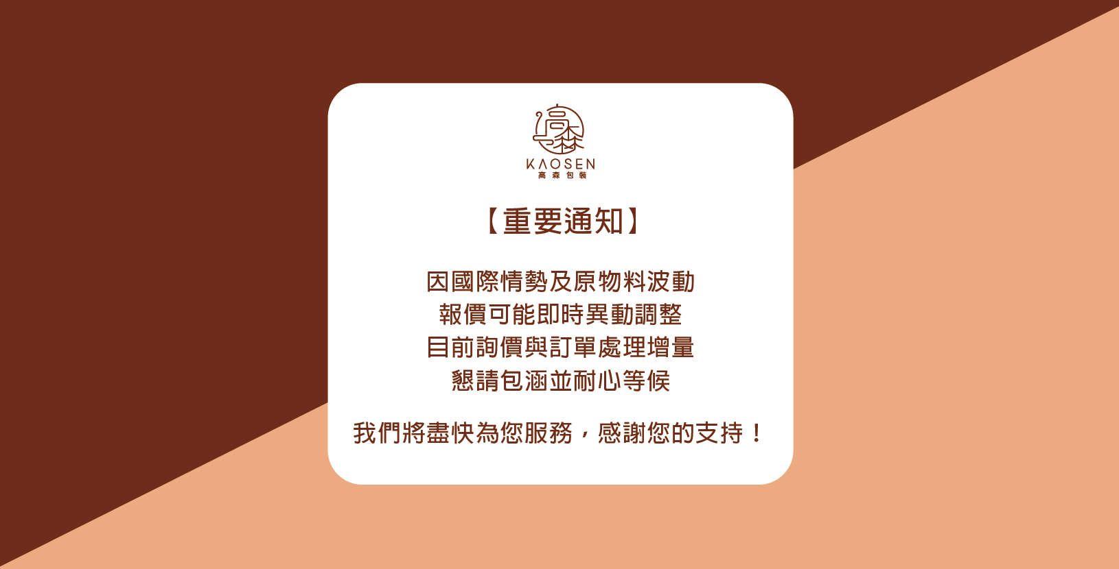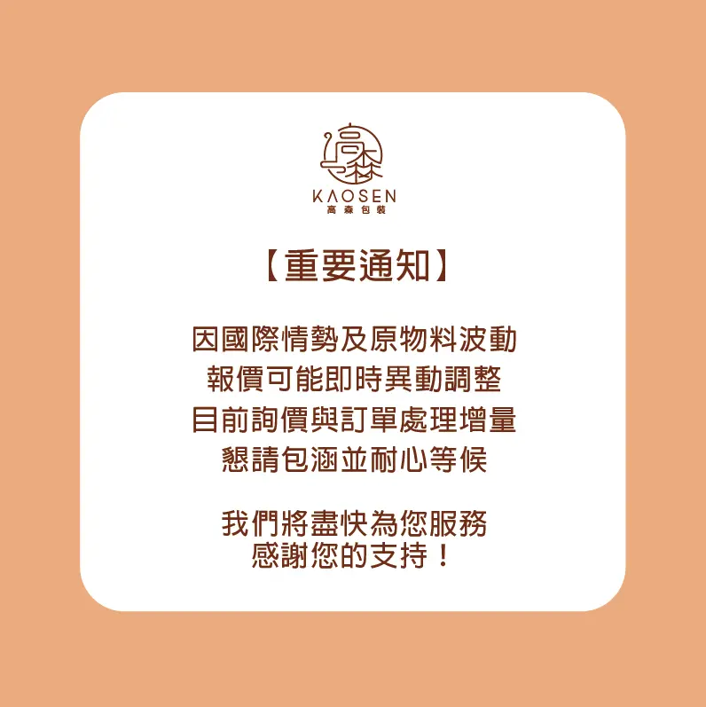 📢 【高森包裝公告】